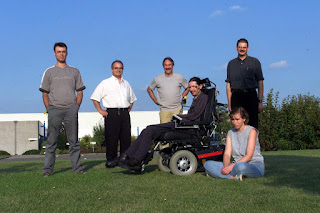 Onze groep (vlnr: F. Spreeuwers, A. Lorefice, J.P. Mathues, R. Vanspauwen, Mieke Dewolfs, Dirk Corstjens) op de industriezone. Opglabbeek, een gemeente waar het goed is om te werken … Ook wij willen daarvoor zorgen.