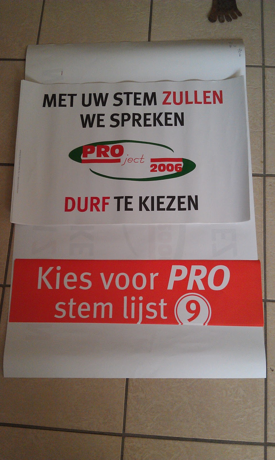 Deze positieve ingesteldheid vinden jullie ook terug in onze naam en onze manier van werken: PRO(ject2006). PRO is ‘voor’, niet ‘tegen’; PRO staat voor iets; is positief kritisch ingesteld; PRO heeft een open werking en wil creatieve ideeën op de politieke agenda plaatsen!