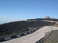 De Etna rookt en doempt maar als je van deze hoogte naar beneden kijkt zie je nog vele andere rookpluimpjes: Sicilianen stoken veel (groen)afval op.